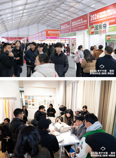 展會(huì)首日,一大早海寧中國(guó)家紡城尚未正式開(kāi)館,登錄口已是人潮涌動(dòng)。拉著行李箱的采購(gòu)商從全國(guó)各地來(lái),操著不同口音的客商在展館外排起長(zhǎng)隊(duì),這是2026年家紡行業(yè)開(kāi)年第一展的火熱開(kāi)場(chǎng),更是買(mǎi)賣(mài)雙方雙向奔赴的生動(dòng)注腳。走進(jìn)展館,撲面而來(lái)的是春日的熱情與商機(jī)的涌動(dòng),新產(chǎn)品、新技術(shù)、新趨勢(shì)在這里交匯,奏響行業(yè)高質(zhì)量發(fā)展的春日樂(lè)章。