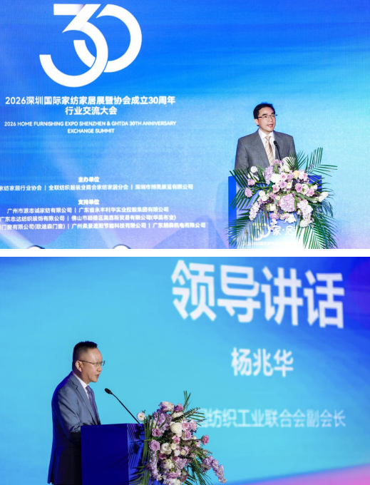 3月7日,深圳福田會(huì)展中心燈火璀璨、嘉賓云集,2026(春)深圳國(guó)際家紡布藝暨家居裝飾展覽會(huì)開(kāi)幕式與廣東省家紡家居行業(yè)協(xié)會(huì)三十周年泛家居行業(yè)高質(zhì)量發(fā)展會(huì)議聯(lián)袂盛大舉行。這場(chǎng)以“三十而礪,家啟未來(lái)”為主題的雙慶盛典,恰逢“十五五”規(guī)劃開(kāi)局之年、深圳承辦APEC峰會(huì)的雙重契機(jī),既是對(duì)協(xié)會(huì)三十載深耕細(xì)作的深情回望,更是中國(guó)家紡家居產(chǎn)業(yè)面向全球、奔赴未來(lái)的集體宣言。近千名各界嘉賓齊聚一堂,共賀盛典、共話發(fā)展、共繪藍(lán)圖。