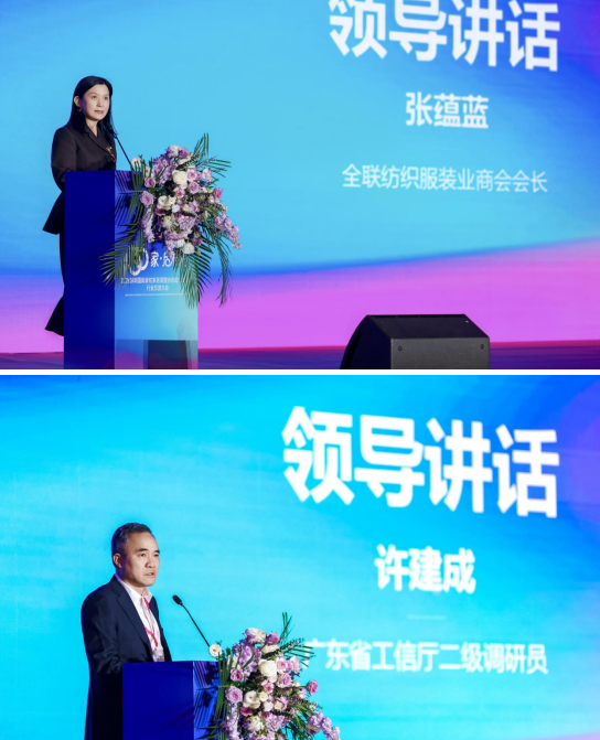 廣東省工信廳二級(jí)調(diào)研員許建成、廣東省工商聯(lián)黨組成員兼秘書(shū)長(zhǎng)關(guān)向明、全聯(lián)紡織服裝業(yè)商會(huì)會(huì)長(zhǎng)張?zhí)N藍(lán)及中國(guó)紡織工業(yè)聯(lián)合會(huì)副會(huì)長(zhǎng)楊兆華相繼致辭。他們充分肯定協(xié)會(huì)三十年來(lái)對(duì)地方經(jīng)濟(jì)發(fā)展和產(chǎn)業(yè)升級(jí)的突出貢獻(xiàn),認(rèn)為協(xié)會(huì)在規(guī)范行業(yè)秩序、推動(dòng)原創(chuàng)創(chuàng)新、開(kāi)拓國(guó)際市場(chǎng)等方面發(fā)揮了不可替代的作用。同時(shí),結(jié)合“十五五”發(fā)展大局,對(duì)協(xié)會(huì)及行業(yè)未來(lái)加快發(fā)展新質(zhì)生產(chǎn)力、推動(dòng)產(chǎn)業(yè)智能化綠色化融合化、開(kāi)拓國(guó)際國(guó)內(nèi)兩個(gè)市場(chǎng)提出殷切期望。