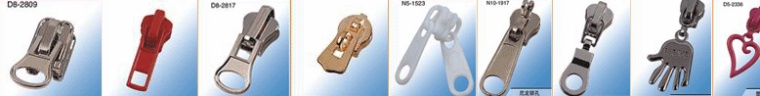 拉頭種類:尼龍象鼻、自鎖、鎖孔、導(dǎo)軌、分開件;塑鋼象鼻、自鎖、蝴蝶自鎖、導(dǎo)軌;金屬象鼻、自鎖、分開件,雙開尾。